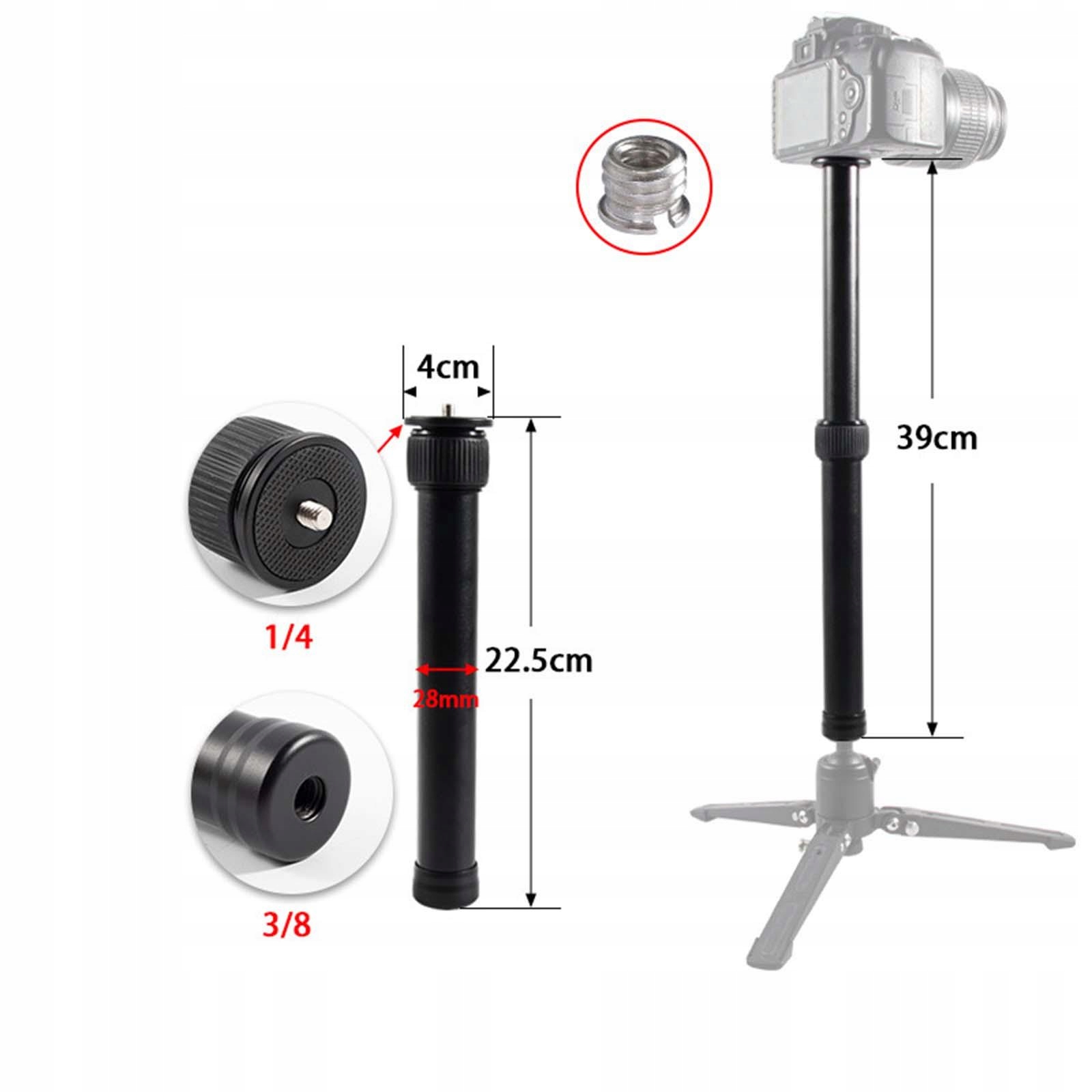 Нижній різьбовий отвір 3/8 дюйма: з нижньою різьбою 3/8 дюйма подовжувач можна встановити на штатив/повзунок.