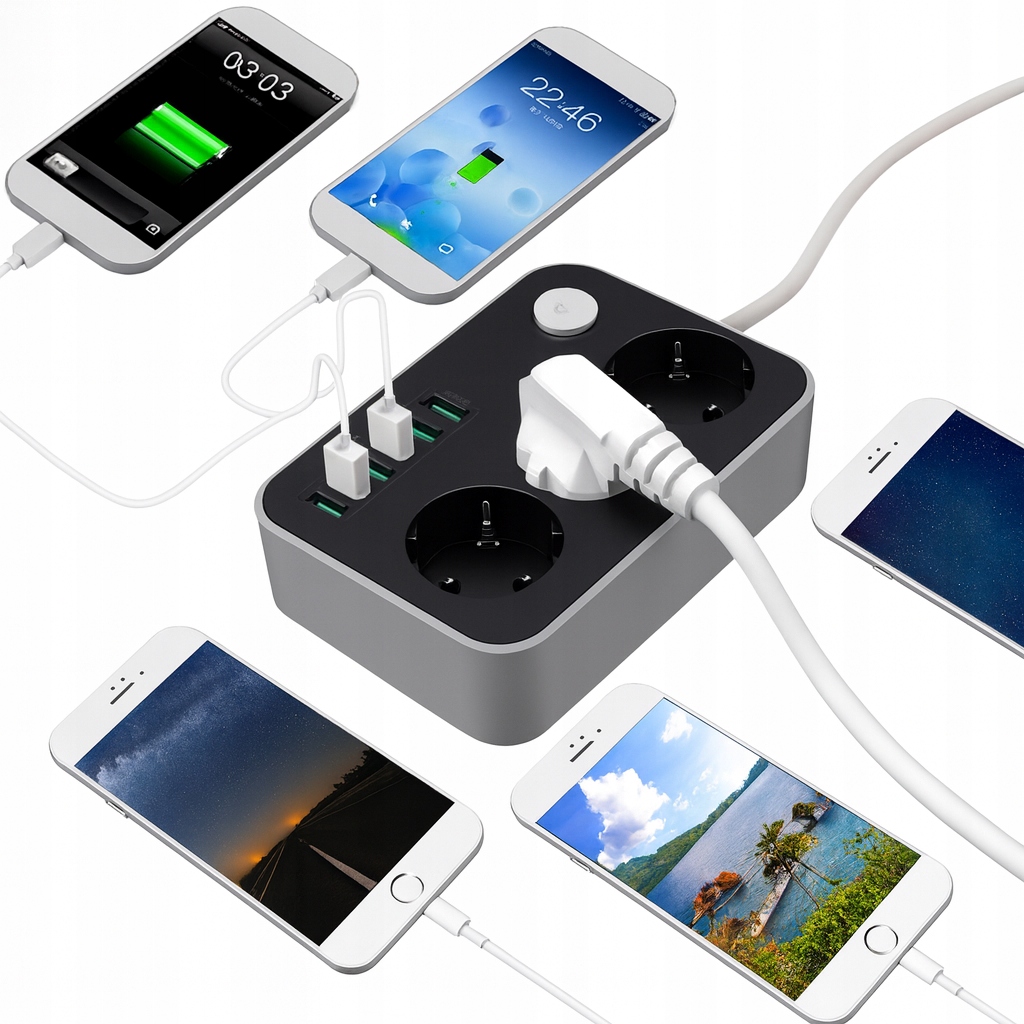 ПОДОВЖУВАЧ ПІДДОВЖУВАЧА 3 РОЗЕТКИ + 6 USB КАБЕЛЬ ЖИВЛЕННЯ 1,9 М