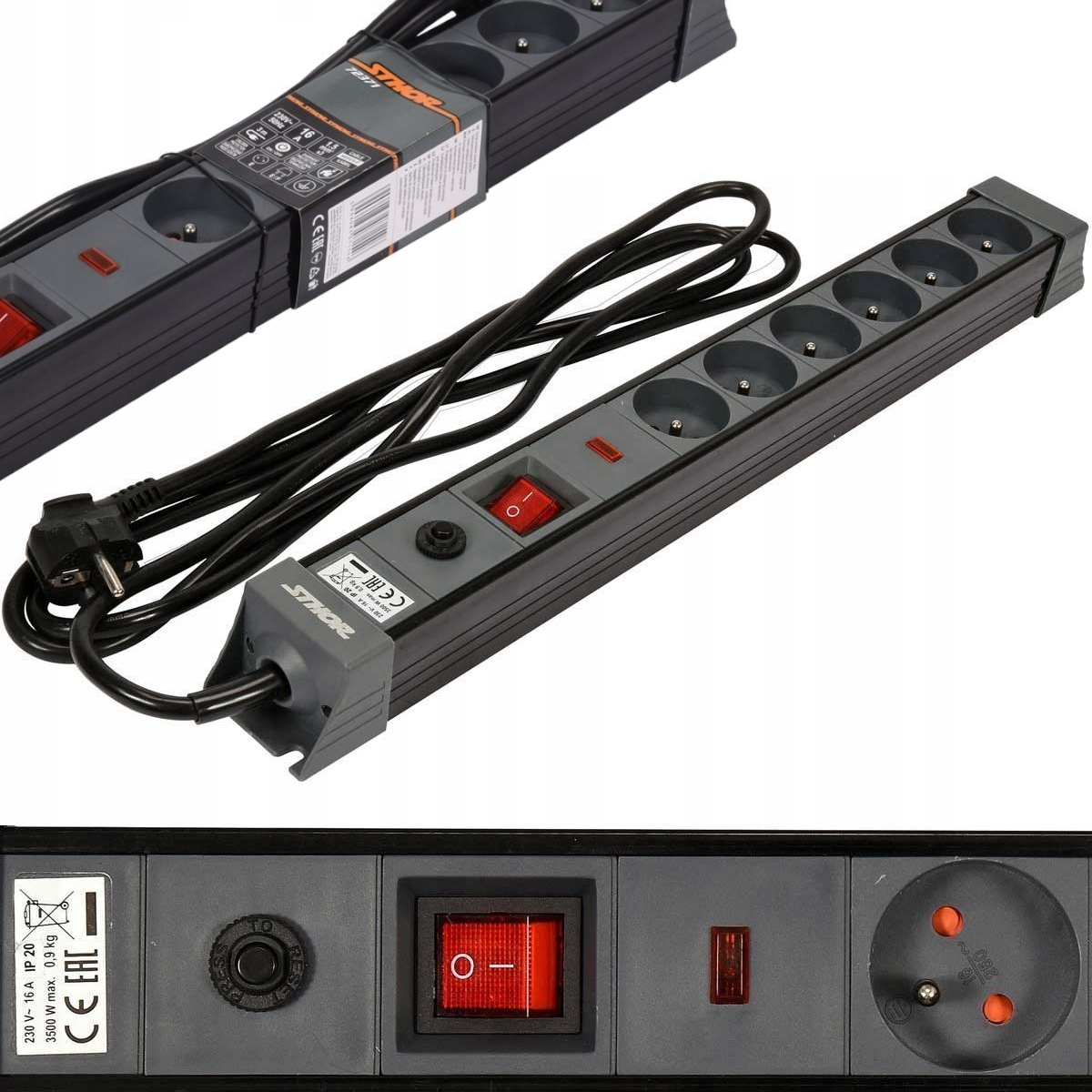 Подовжувач торгової марки STHOR маєзахист від стрибків напруги та перевантаження, розетки із заземленням і захист від дітей і вимикач, що відключає живлення у всіх розетках.