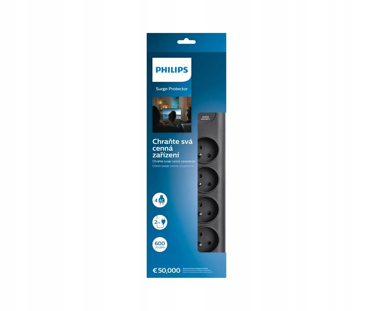 ПЛАНКА PHILIPS SURGE STRIP 4 РОЗЕТКИ 2M ЧОРНА 16