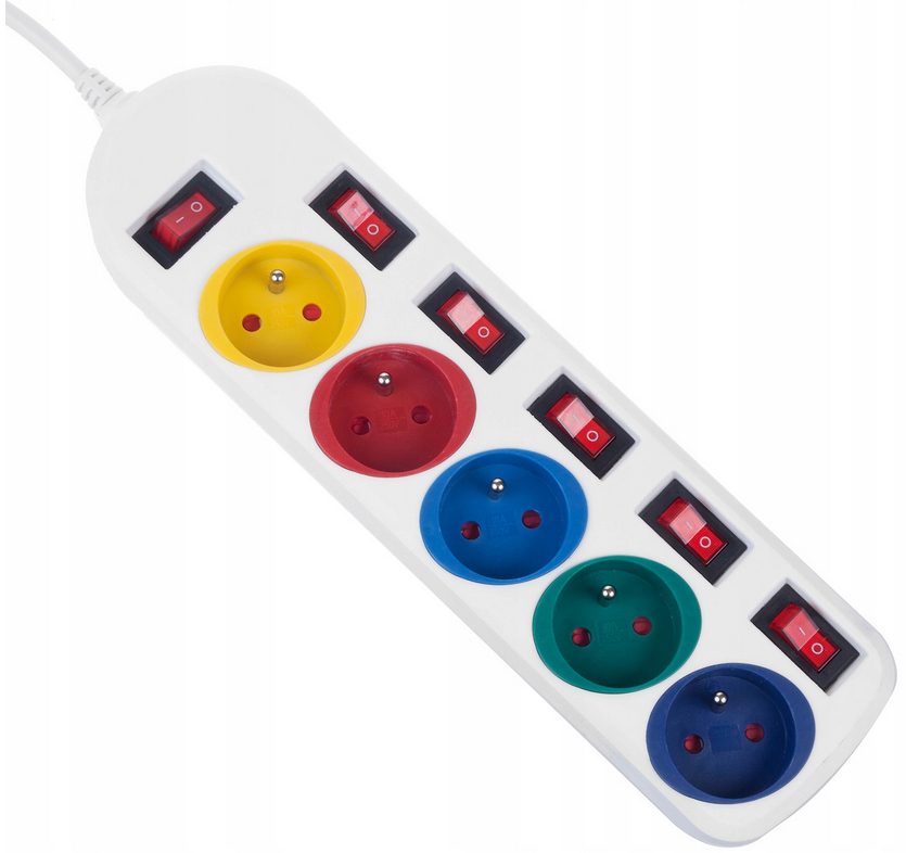 Подовжувач із 5 розетками дозволяє одночасно підключати до п’яти повнорозмірних вилок. Він має захист від дітей, вимикач з підсвічуванням і окремі вимикачі для кожної розетки.