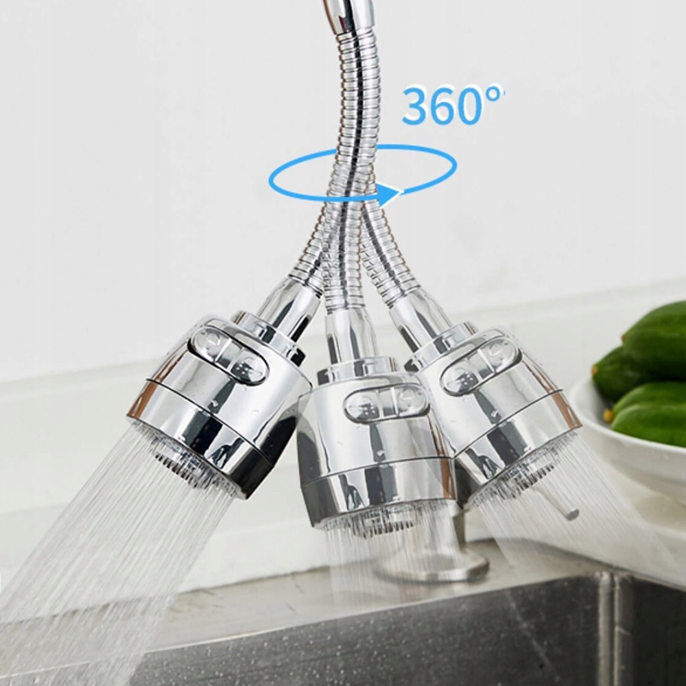 Поворотний подовжувач змішувача — це продукт, який ідеально підійде на вашій кухні. Це значно полегшить такі дії, як миття посуду, чищення раковини або наливання води у високі ємності, такі як вази, відра чи пляшки. Має гнучкий шланг і два режими потоку води, які змінюються кнопкою. Аератор з високоякісних матеріалів запобігає розбризкуванню води в різні боки, зменшуючи споживання води та створюючи додаткову економію. Він підходить для більшості кранів, доступних на ринку, його встановлення надзвичайно просте та займає лише кілька хвилин. У комплект входить дві печатки.