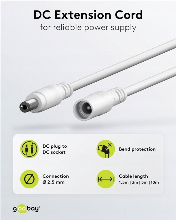 Кабель-подовжувач постійного струму, 1,5 м, білий - Довжина кабелю 1,5 м
