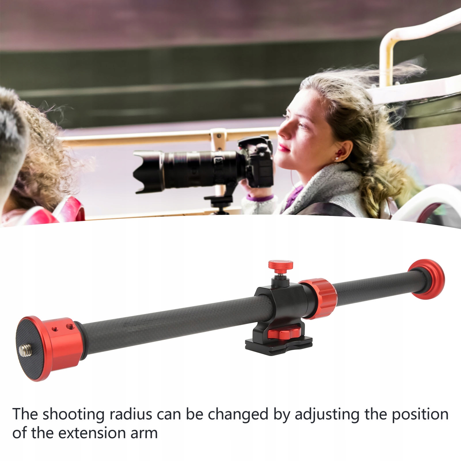 1. Обертання на 360 градусів: після горизонтальної установки подовжувач штатива може вільно обертатися на 360 градусів, а радіус зйомки можна змінити, регулюючи положення подовжувача.