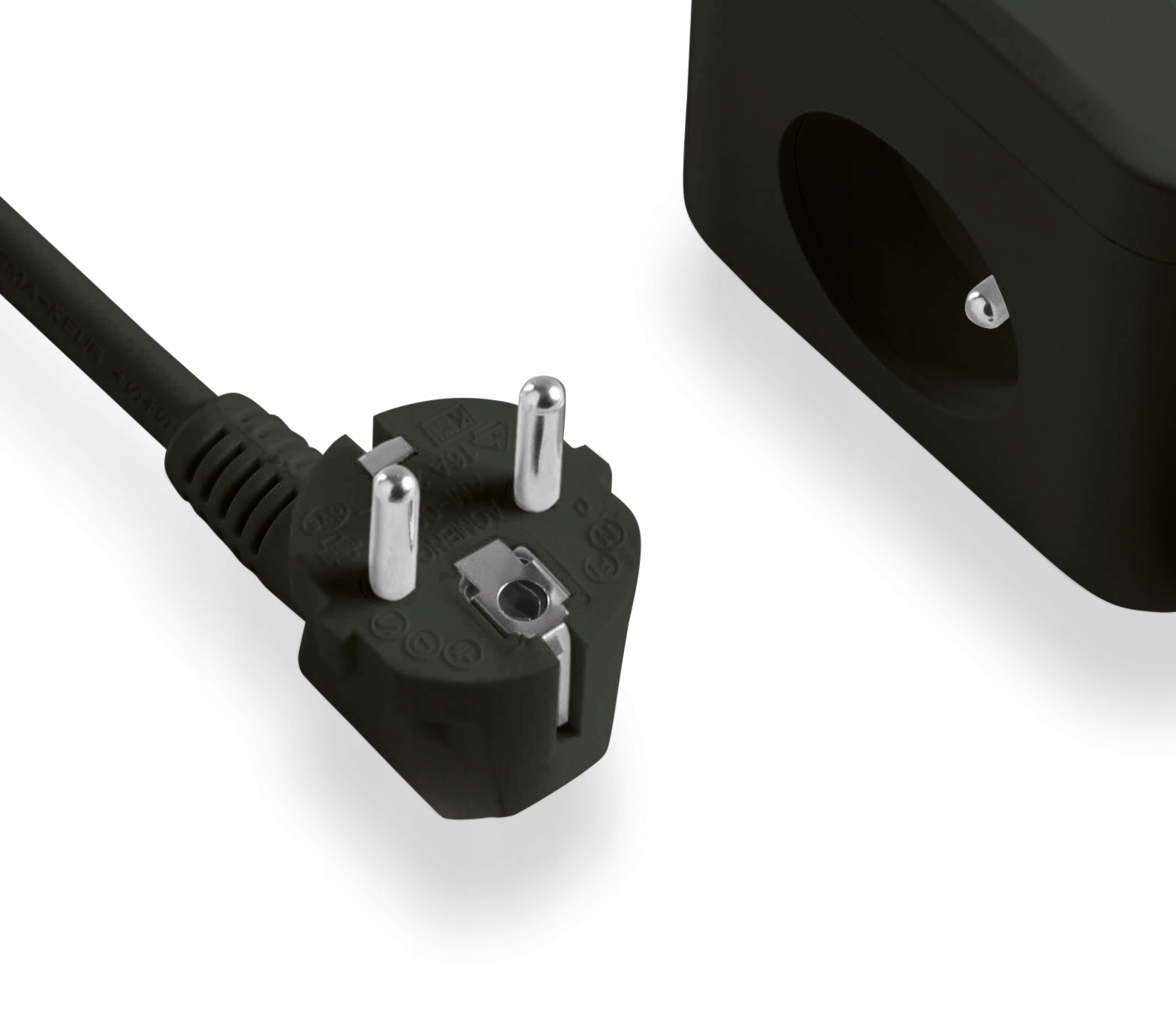 Завдяки структурі у формі куба подовжувач займає мало місця на письмовому столі, тумбочці чи кухонній стійці.