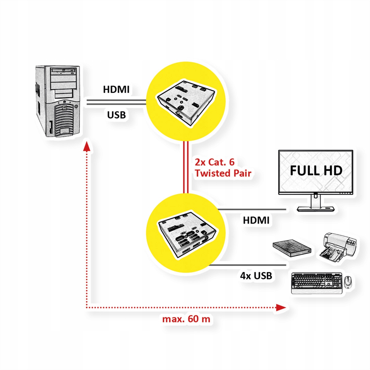 Подовжувач VALUE KVM через cat.5e/6, HDMI, 4 x USB