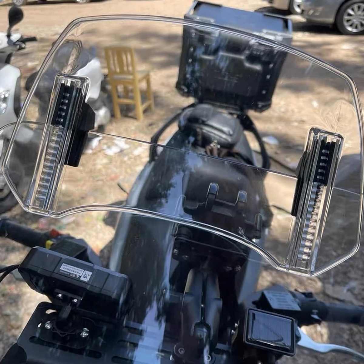 Завдяки нашому інноваційному подовжувачу вітрового скла вам більше не доведеться турбуватися про дискомфорт, спричинений холодним вітром і дощем, які б’ють по вашому тілу під час їзди на мотоциклі. Він легко кріпиться до оригінального лобового скла та підходить для більшості вітрових стекол.