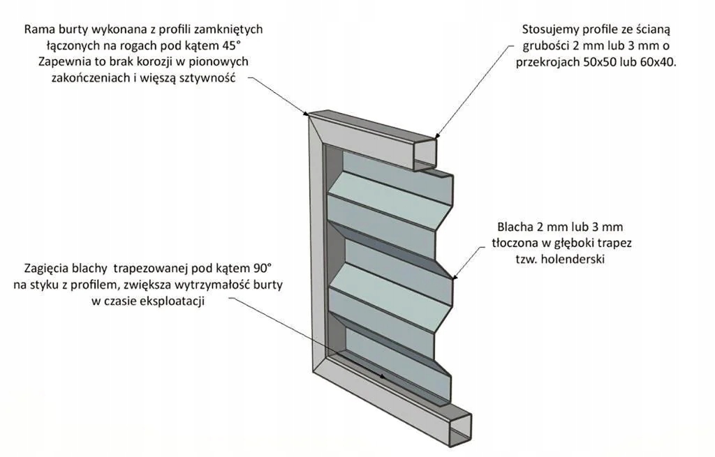 - розширення з листового металу 2 мм, тиснені у вигляді глибокої трапеції, т.зв. голландська
