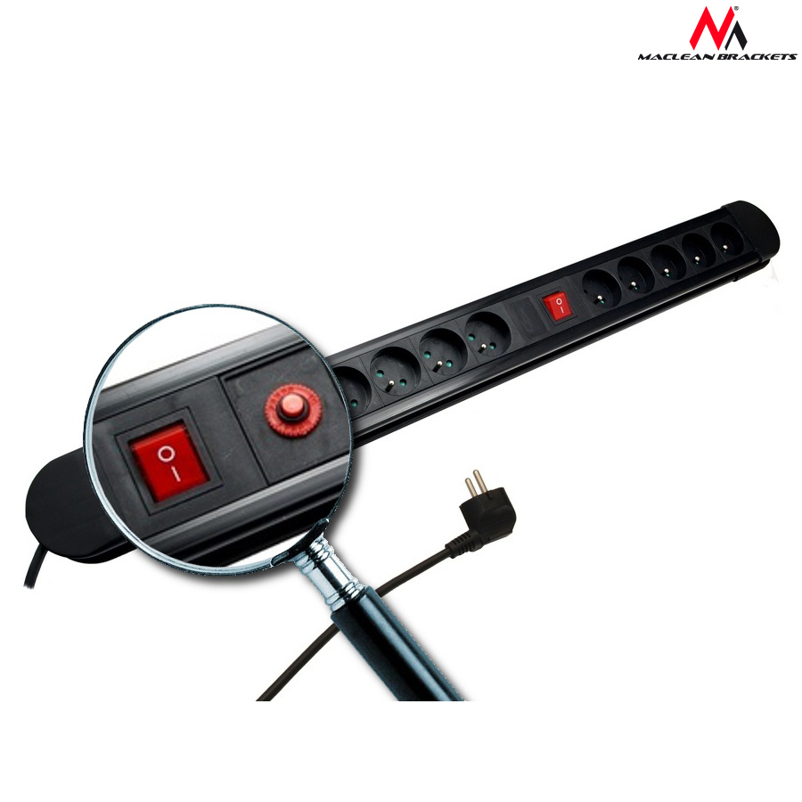 Подовжувач на 10 розеток, 2 вимикачі та автоматичний запобіжник від відомої компанії Maclean.