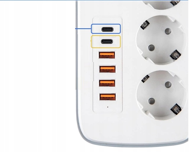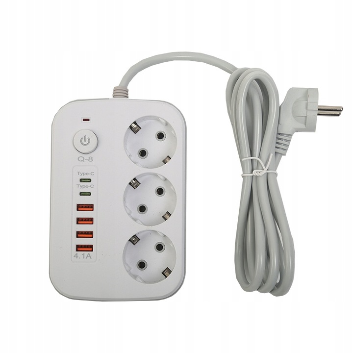 ПОДОВЖУВАЛЬНИЙ КАБЕЛЬ ЖИВЛЕННЯ 2м 3 ГНІЗДА + 4xUSB +2xUSB Type-C