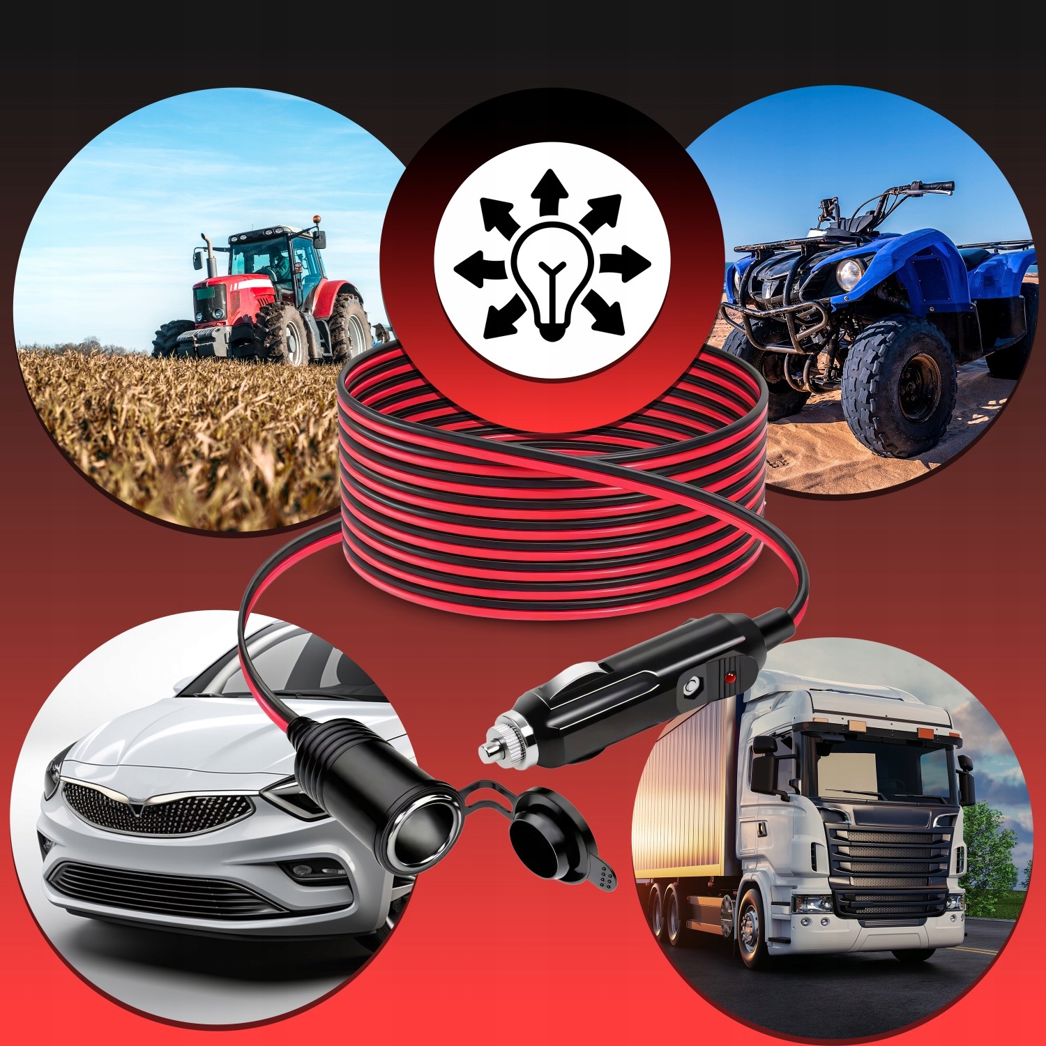 ПОДОВЖУЮЧИЙ КАБЕЛЬ З ГНІЗДОМ ПРИКУЛЬТУВАЛЬНИКА 4 М 12 В МІДНИЙ 15 A МІЦНИЙ КАБЕЛЬ 400 СМ BUS TIR