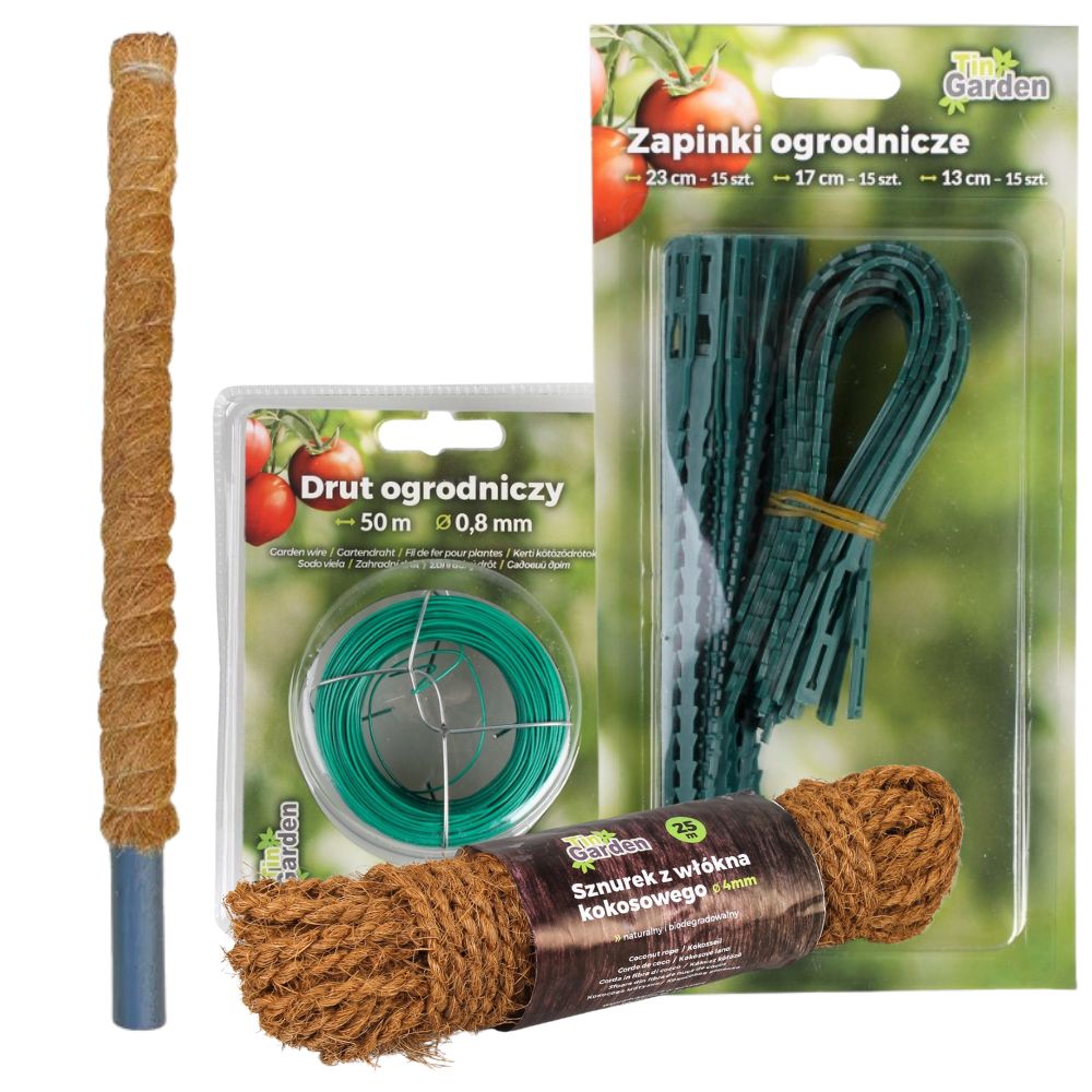 PODPORA PALIK KOKOSOWY 100CM DO ROŚLIN + ZAPINKI SZNUREK DRUCIK ZESTAW
