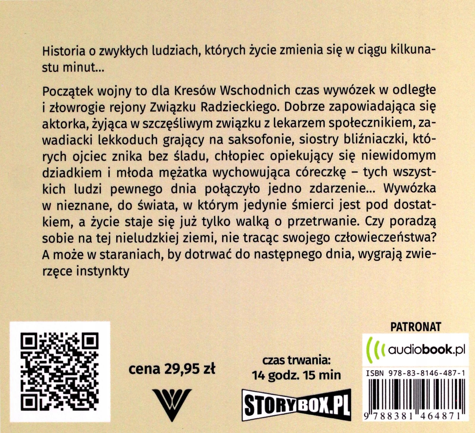 Історія про звичайних людей, життя яких змінюється за лічені хвилини? Початок війни був часом депортацій для східних окраїн у далекі та зловісні краї Радянського Союзу. Багатообіцяюча актриса, яка живе в щасливих стосунках із соціальним лікарем, нахабний хлопець, який грає на саксофоні, сестри-близнючки, чий батько безслідно зник, хлопець, який доглядає за своїм сліпим дідусем, і молода заміжня жінка, яка виховує доньку – усі ці люди. були об'єднані одним днем однією подією? Депортація в невідомість, у світ, де вистачає лише смерті, а життя стає лише боротьбою за виживання. Чи зможуть вони впоратися на цій нелюдській землі, не втративши людяності? А може, тваринні інстинкти переможуть у спробі дожити до наступного дня?