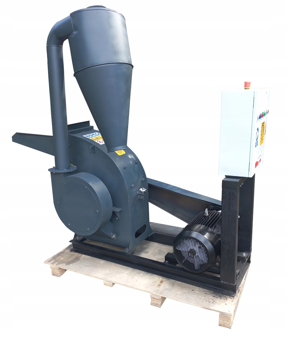 Млин використовується у виробництві пелет, тому що після подрібнення матеріал отримує ідеальну фракцію для пелетування. Крім того, він функціонує як фільтр, який затримує всі небажані елементи, що містяться в матеріалі, які можуть пошкодити пелетник, наприклад, металеві елементи, тверді сучки, каміння. Молоткова млин із потужністю потужності до 900 кг/год залежно від сита, що використовується, і вологості сировини. Пристрій призначений для роботи з деревними відходами, гілками та плитами фракцією не більше 80 мм.
