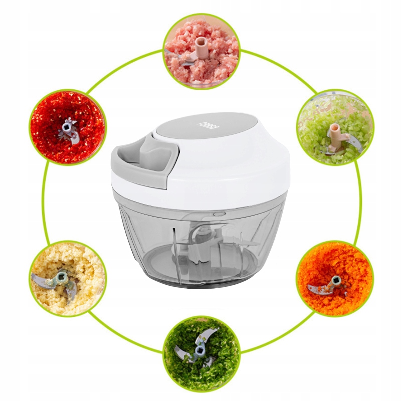 Пристрій розроблено таким чином, що ви не обмежені діапазоном кабелю живлення. Секрет швидкої та ефективної роботи полягає в струновому механізмі. Просто кілька разів потягніть за автоматично накручену нитку, приводячи леза в рух, і всі інгредієнти будуть правильно подрібнені.