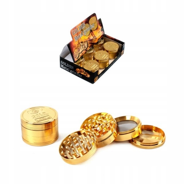 Легкий алюмінієвий крекер Golden має металеву сітку, під якою збирається пилок, і до складу також входить скребок для пилку, а його невелика вага дозволяє нам завжди мати подрібнювач із собою. Ромбоподібні леза м’ясорубки завжди забезпечують рівномірне та дрібне подрібнення трав. Верхня кришка закривається на магніт.