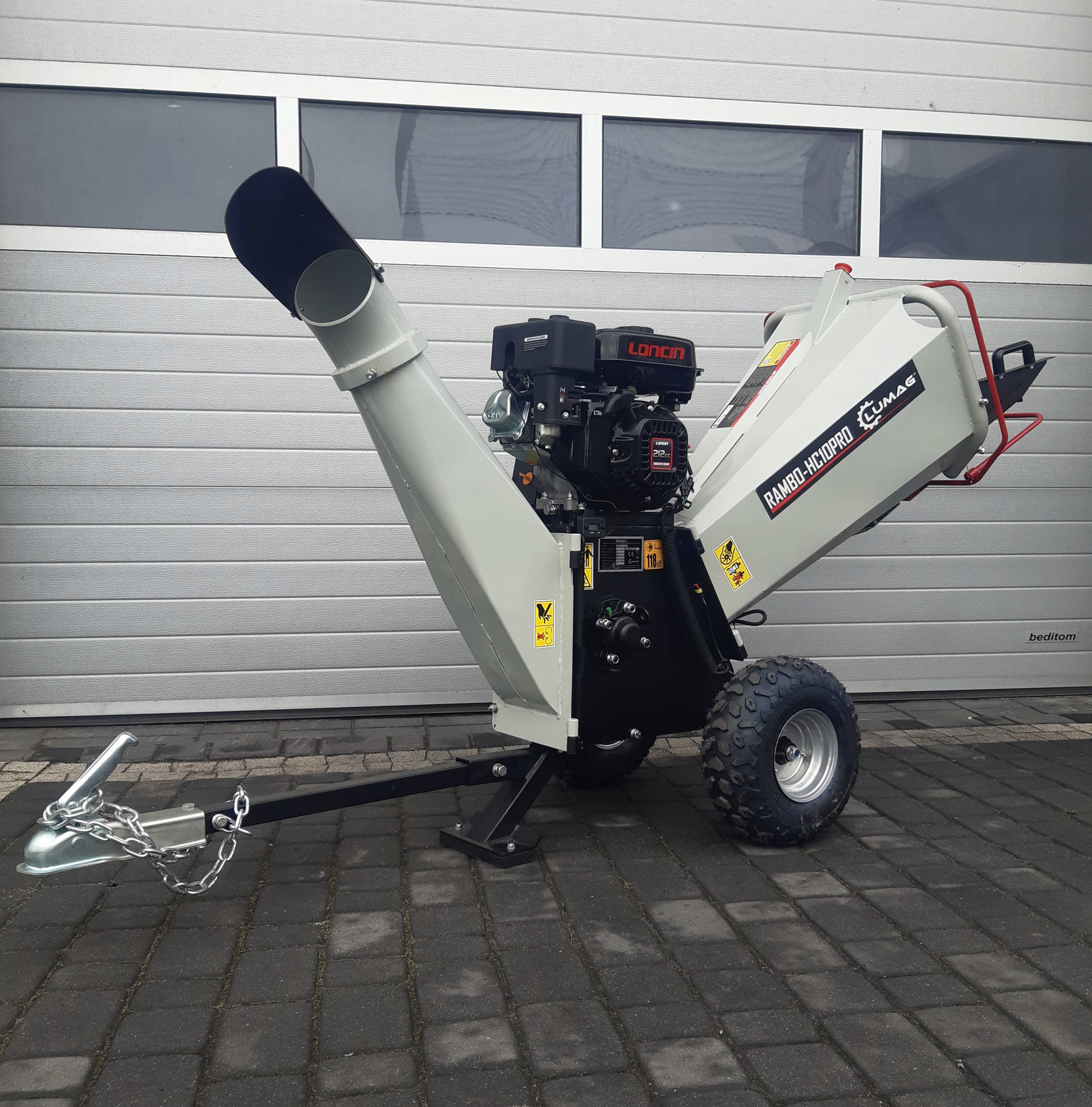 Подрібнювач гілок RAMBO-HC10PRO від Lumag Німеччина оснащений потужним і ефективним двигуном потужністю 7,0 к.с., що дає змогу подрібнити гілки діаметром до 100 мм.
