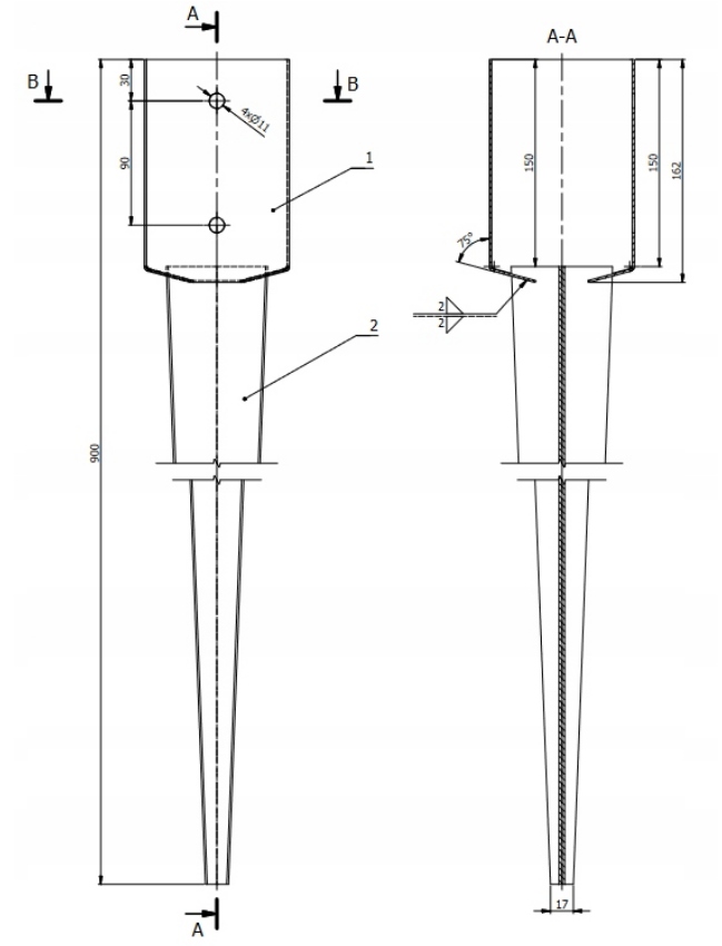 PODSTAWA SŁUPA KOTWA WBIJANA 100x100x900