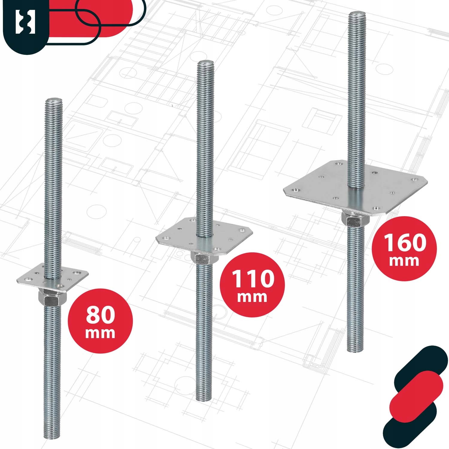 PODSTAWA SŁUPA REGULACJA WYSOKOŚCI 80X80X500 MM KOTWA WSPORNIK PRĘT M 24