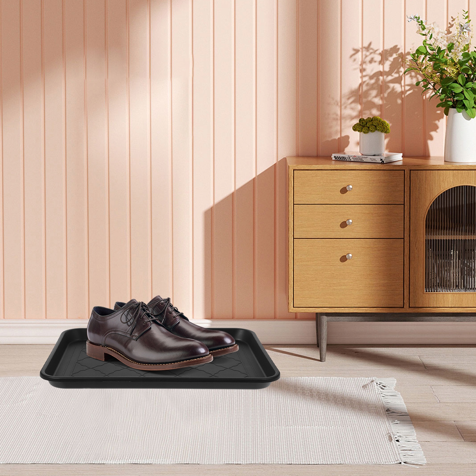 ✅Ця полиця для взуття є універсальним рішенням для зберігання взуття, різних предметів або навіть як вкладиша для багажника чи лотка для домашніх тварин. Його великий розмір вміщає будь-яке взуття, включаючи туфлі на підборах і кросівки. Лоток тримає ваше взуття на місці та впорядковано, а матеріал забезпечує тривале використання. Елегантний чорний дизайн підходить до будь-якого домашнього стилю.