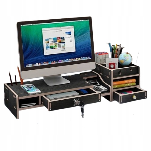 PODSTAWKA POD MONITOR LAPTOP Z SZUFLADĄ PODSTAWA PÓŁKA CZARNA BIURO