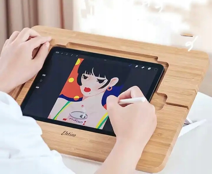 - Міцна конструкція на основі бамбукової деревини, яка пройшла відповіднуобробку та гаряче просочення. Це дозволяє вам використовувати iPad у дуже зручний спосіб, тримаючи його разом і надаючи велику мобільність і гнучкість у використанні