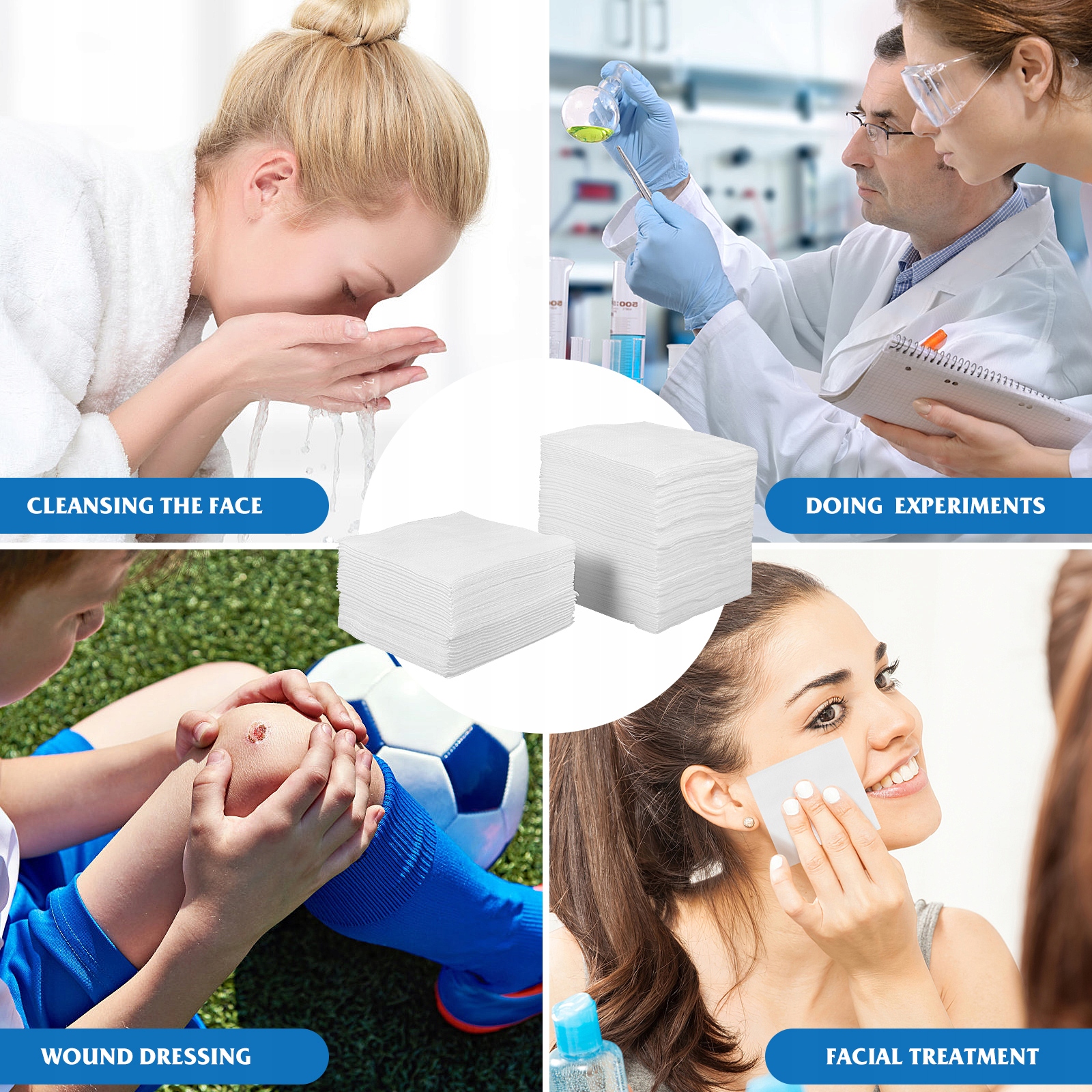 ✅Ці багатофункціональні одноразові прокладки виготовлені з м’якого матеріалу, який приємний на дотик, приємний до шкіри та підходить для більшості типів шкіри. Можна використовувати як подушечку для зняття макіяжу, щоб швидко та легко очистити шкіру; як подушечка для догляду за кремами, бальзамами, тоніками; також для перев'язки ран і перев'язок пошкоджених місць.