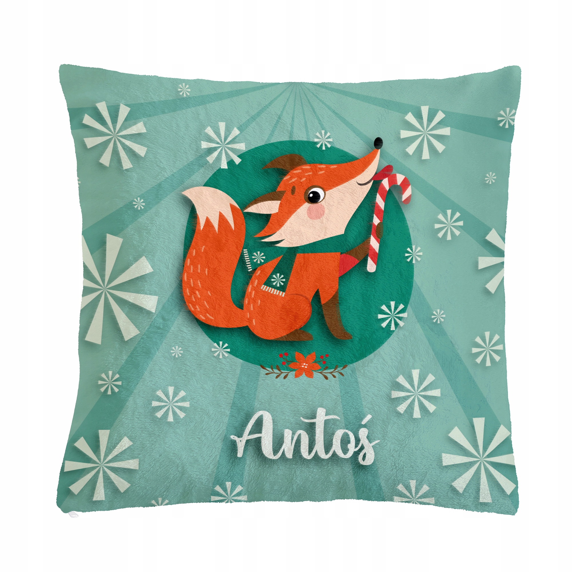 ⭐М'ЯКА ПЛЮШЕВА ПОДУШКА З КОЛЬОРОВИМ РІЗДВЯНИМ ПРИНТОМ ТА ІМЕНЕМ ДИТИНИ⭐