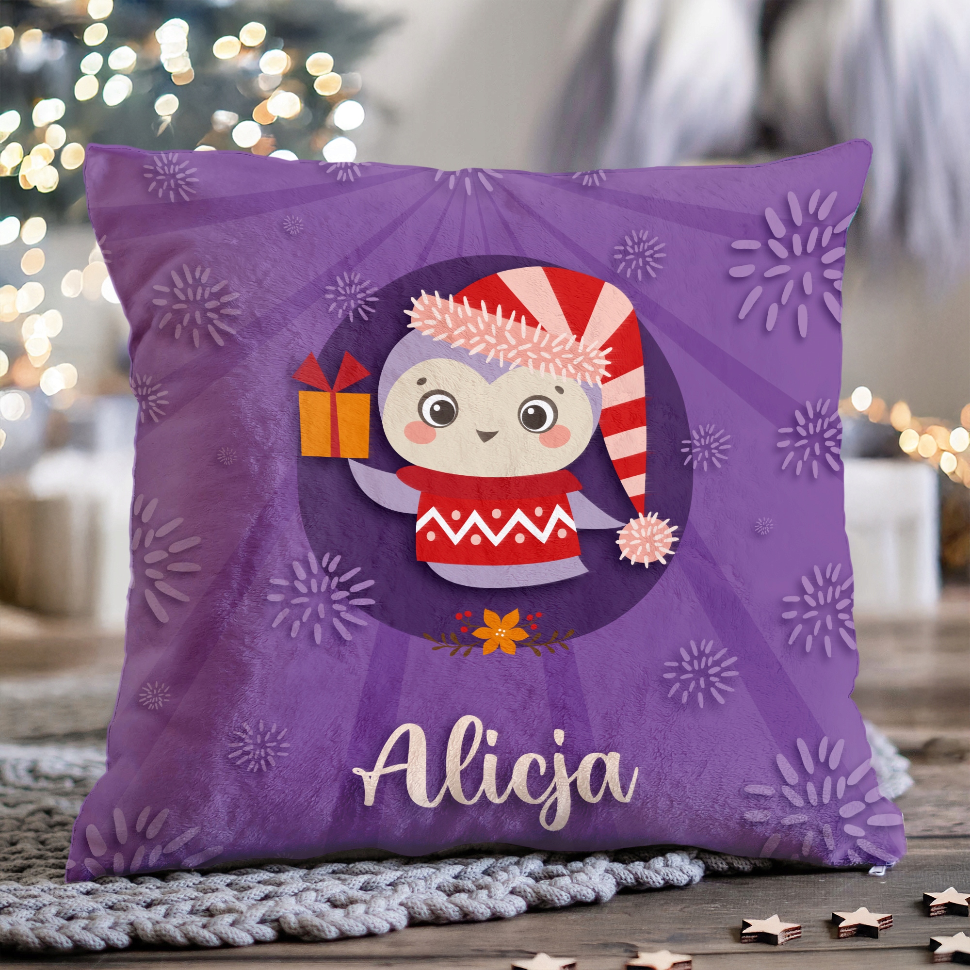 ⭐М'ЯКА ПЛЮШЕВА ПОДУШКА З КОЛЬОРОВИМ РІЗДВЯНИМ ПРИНТОМ ТА ІМЕНЕМ ДИТИНИ⭐