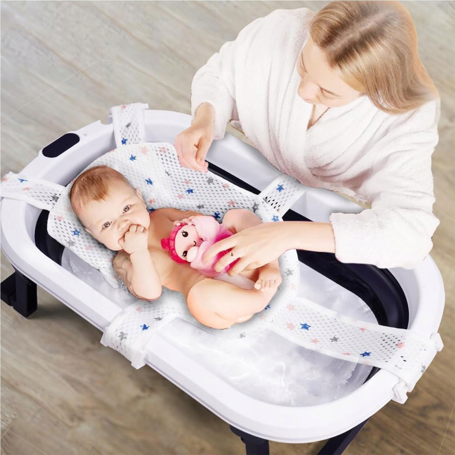Дно -слизування від сітки гарантує, що тіло дитини безпечно лежить і не рухається у ванні. Завдяки подушці для купання ви можете бути спокійними щодо комфорту та безпеки своєї дитини.