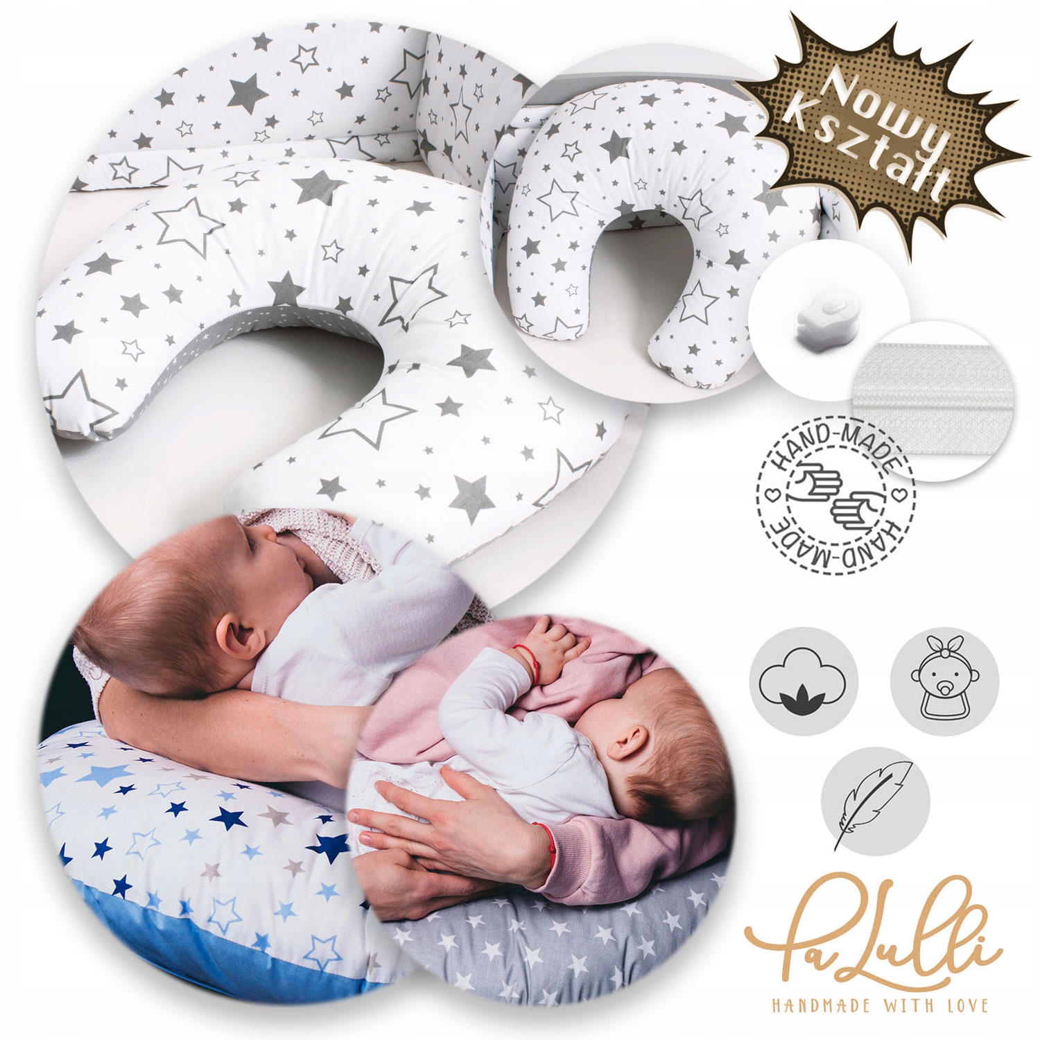Зовсім нова квасоля PaLulli — це унікальна подушка, яка полегшує грудне вигодовування або годування з пляшечки. Він був перероблений відповідно до потреб наших клієнтів і в своєму поточному вигляді є одним із найкращих продуктів цього типу, доступних на ринку. Ергономічна форма, збільшена передня поверхня, на якій лежить дитина, і знімний чохол, який значно полегшує утримання кісти, є найважливішими перевагами, які відрізняють нас від конкурентів.