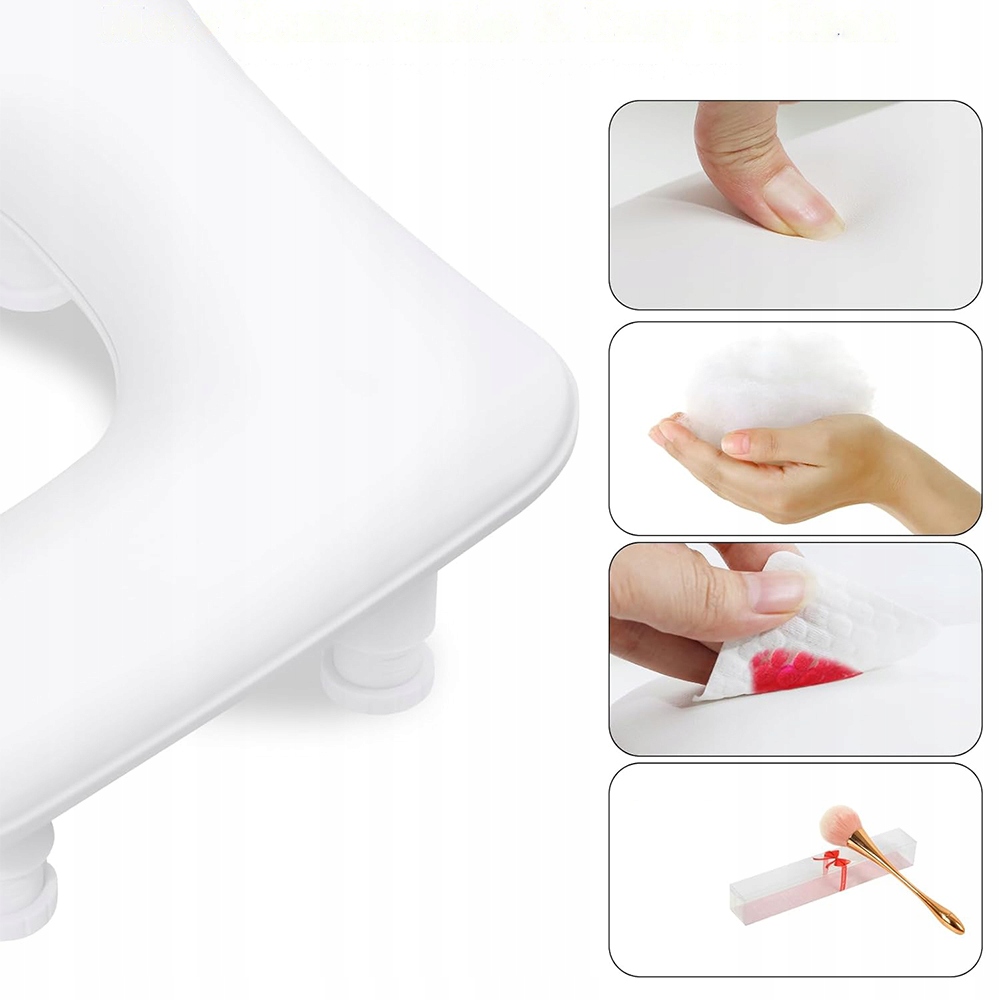 Цей професійний підлокітник для манікюру розроблений для майстрів нігтів і любителів домашнього стилю. U-подібна структура з високоякісної піни з пам'яттю ідеально адаптується до вигину руки, забезпечуючи виняткову підтримку та комфорт навіть під час тривалої роботи.
