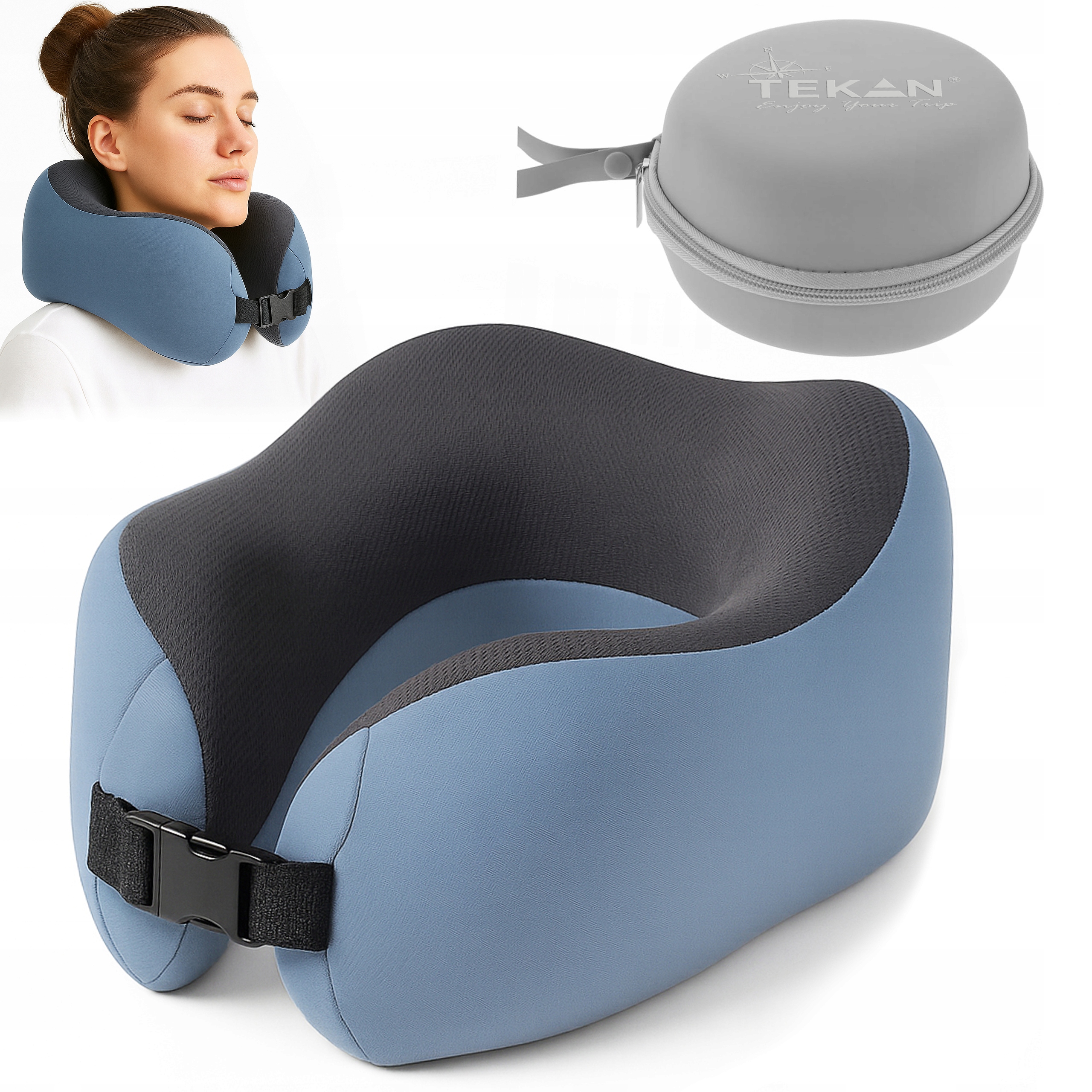 Високоякісна подушка з пам'яті ПРЕМІУМ для подорожей - ергономічна, складна, з чохлом TEKAN