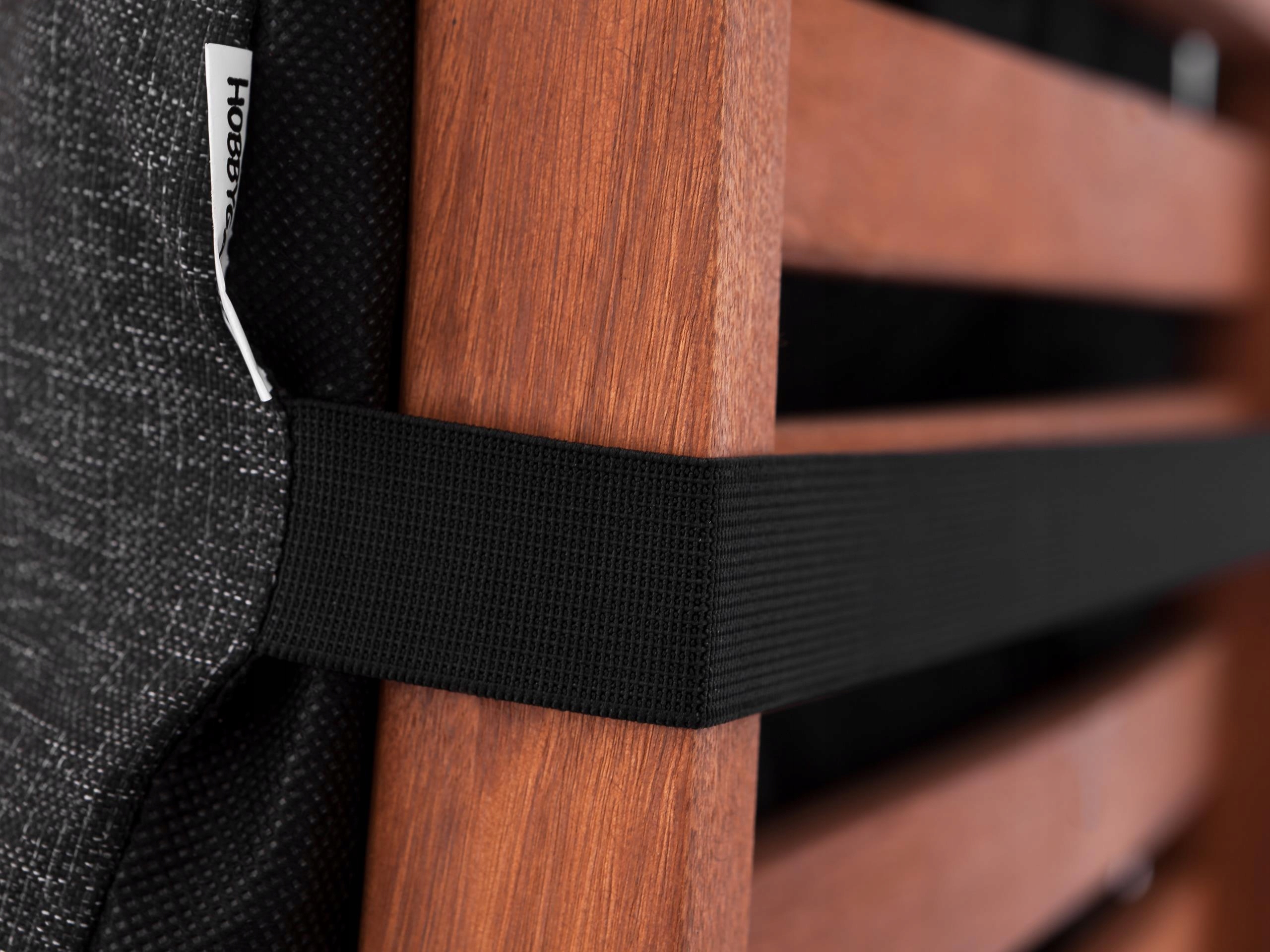 - Наші подушки легко встановити. Просто прив’яжіть ремені до корпусу шезлонга та натягніть гумку на спинку