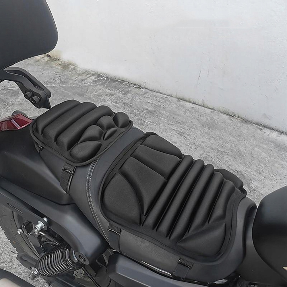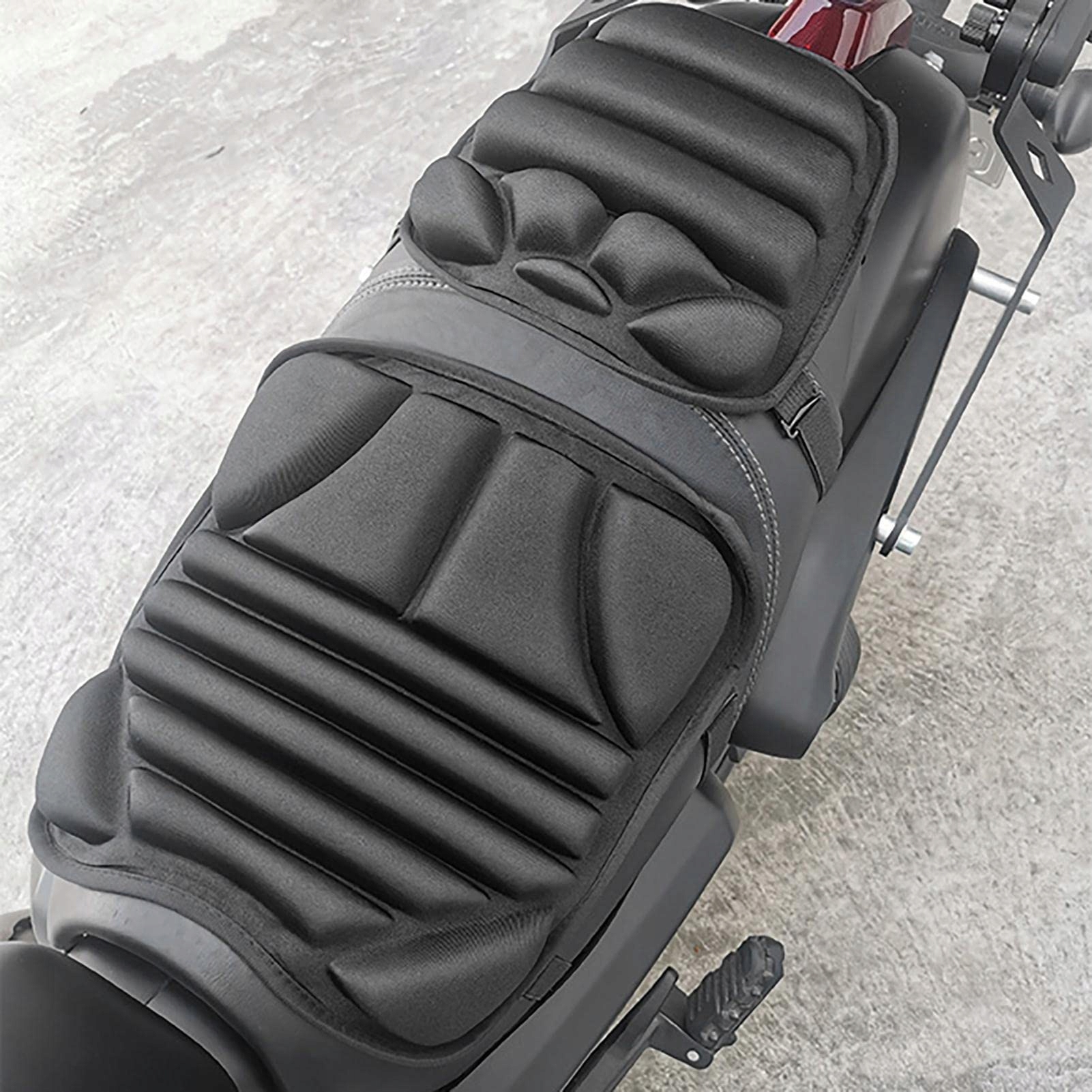Ця подушка для сидіння мотоцикла має частинки, що запобігають ковзанню, і надзвичайно практичний подвійний бандаж, щоб міцно тримати її на сидінні мотоцикла та забезпечити комфортне та плавне водіння.