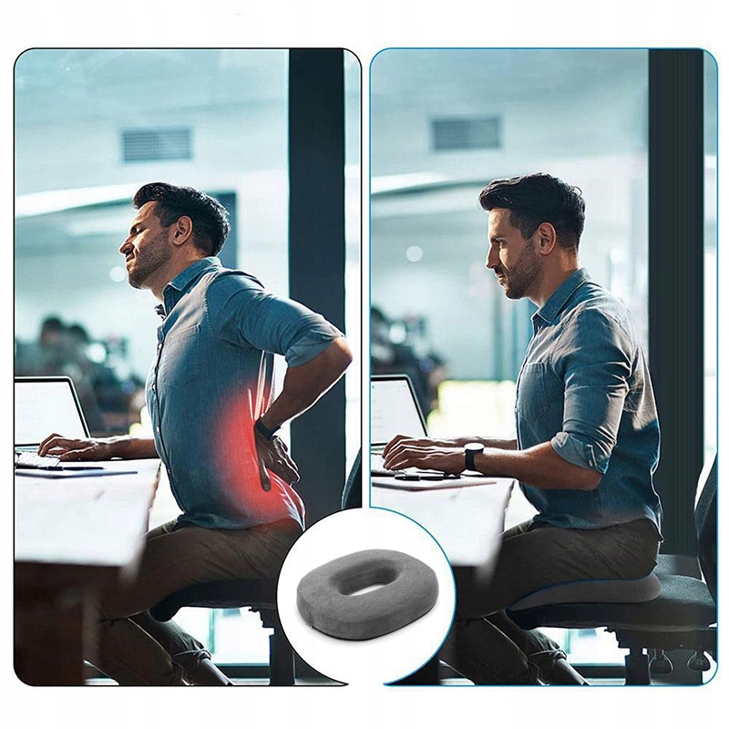 O-подібний, ергономічний дизайн ортопедичного сидіння подушку, яку ортопеди та лікарі в усьому світі рекомендують проти болю, вона допомагає, зменшуючи тиск у стратегічних областях і сприяючи вертикальній поставі.