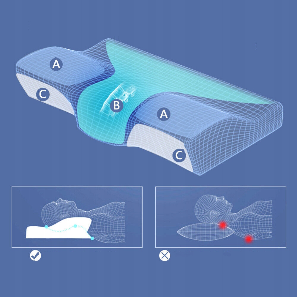 🛏【Подушка з піни з ефектом пам’яті метелик】- Подушка для шиї метелик має розміри 30 x 50 x 7/10 см. Інноваційний контурний дизайн шиї та піна з пам'яттю адаптуються до природного вигину шиї, завдяки чому подушка забезпечує бажане полегшення під час сну. Покращує якість сну та знімає біль у шиї та плечах. Це також допомагає зменшити хропіння, насолодитися хорошим сном. Підходить для тих, хто спить (на боці, на спині та на животі).