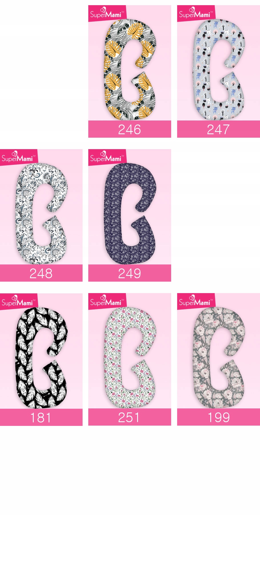 Розміри подушки для вагітних Supermami "C" оптимально підібрані для забезпечення комфорту кожної вагітної жінки. Більші розміри подушок, доступних на ринку, означають, що їх основна функціональність порушується (відсутність належної підтримки для спини) на користь збільшення простору для дитячого манежу. Основна функція подушки для вагітних – запобігати захворюванням, пов’язаним із неправильним положенням під час сну, шляхом відповідного положення тіла, тобто підняття ноги, що покращує кровопостачання плоду, і підняття голови, що вирівнює хребет із поперековим відділом і тазу. Тому підтримувати спину широкими подушками дуже важко.