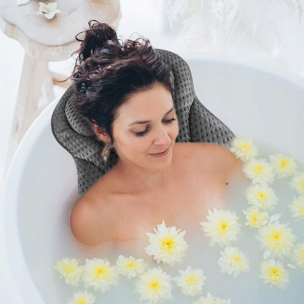 🛁 [Безпечний і стабільний] Наші подушки для ванни постачаються з 6 міцними присосками, які міцно тримають їх на будь-якій гладкій поверхні. Попрощайтеся з клопотами, пов’язаними з пересуванням і перенастроюванням у ванні. Наша подушка для ванни залишається на місці для безперервного комфорту та підтримки.