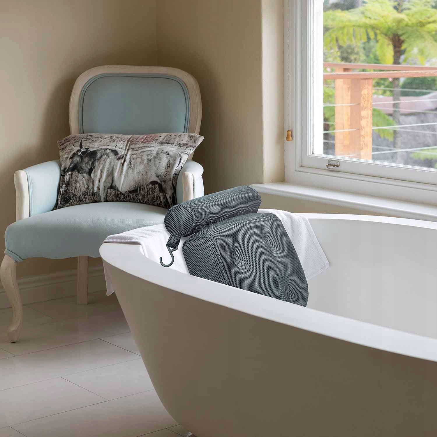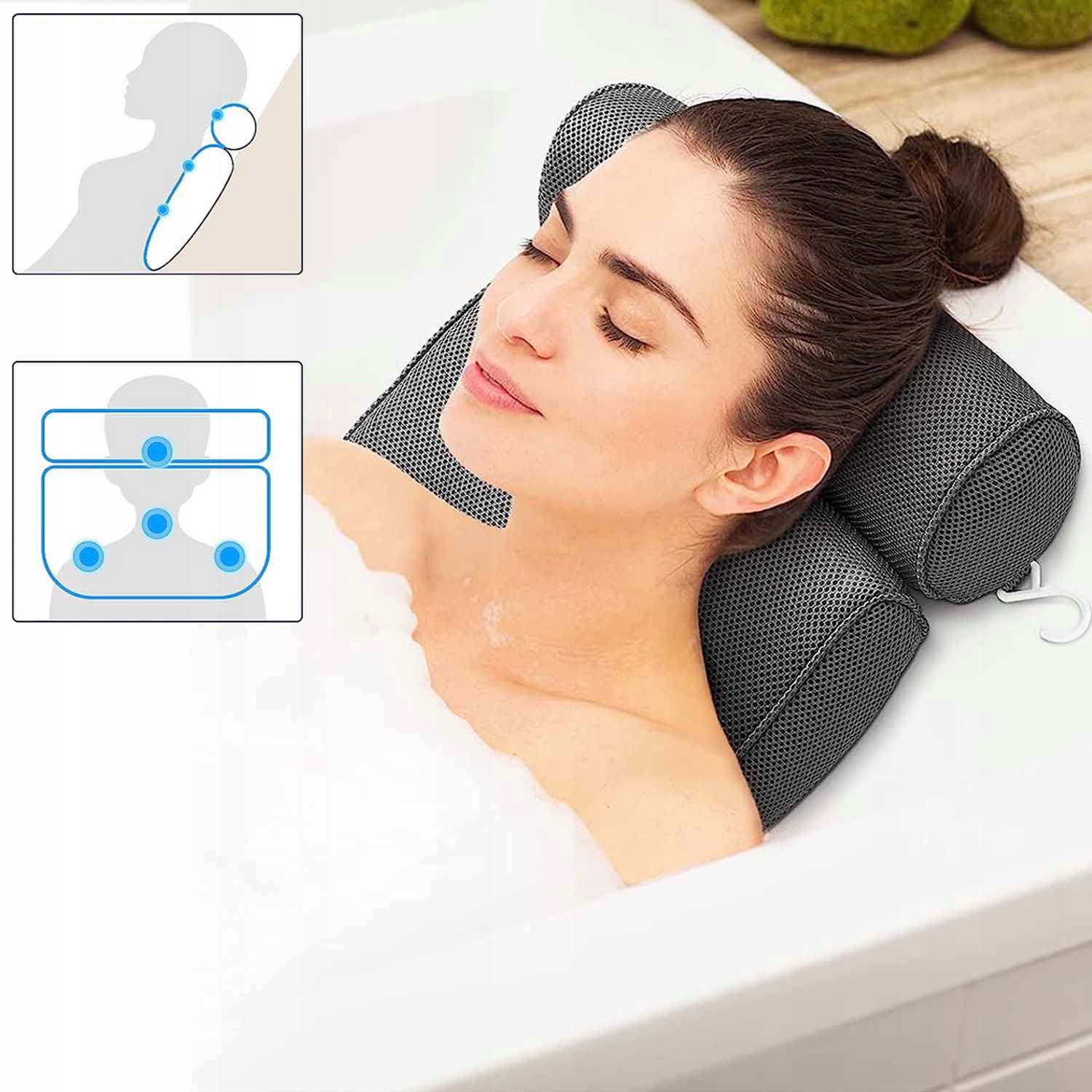 Подушка для ванни підсошку присоски під час голови спа -сірого
