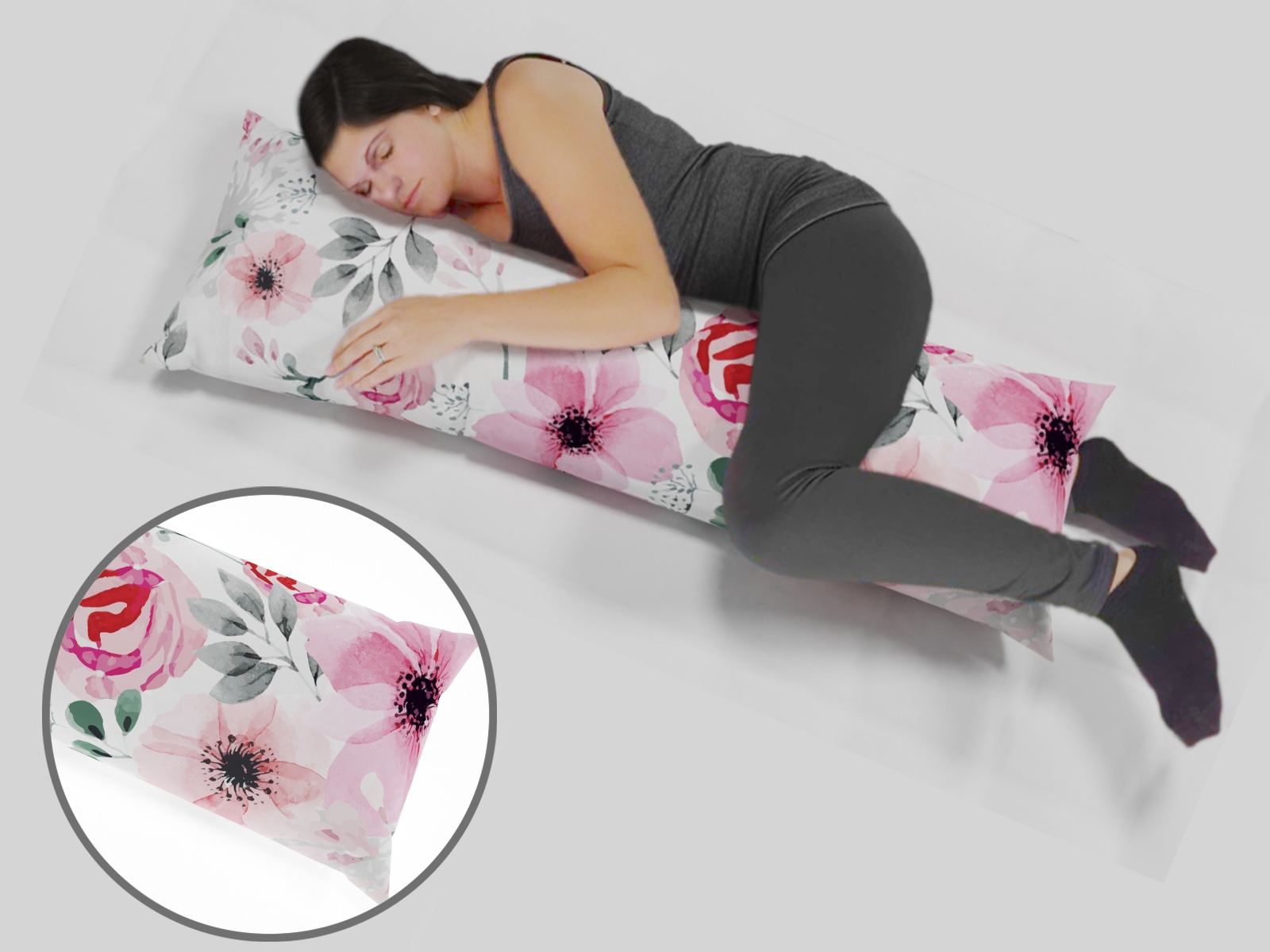 Подушка довга з квітами 45х140см