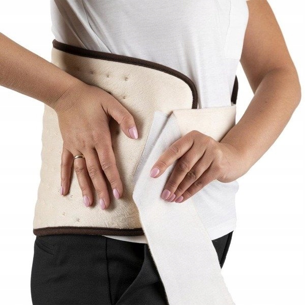 Пояс покритий еластичною тканиною - м'якою, приємною на дотик, яка не подразнює шкіру. Прилад має регулювання температури і функцію автоматичного відключення через 90 хвилин.