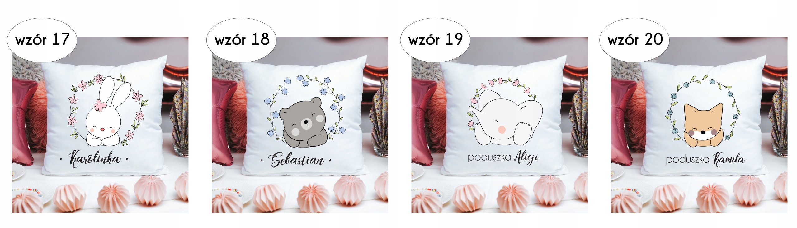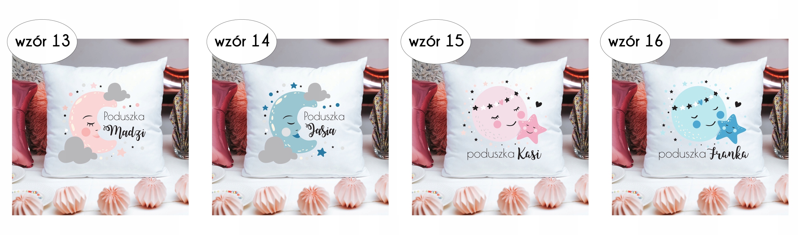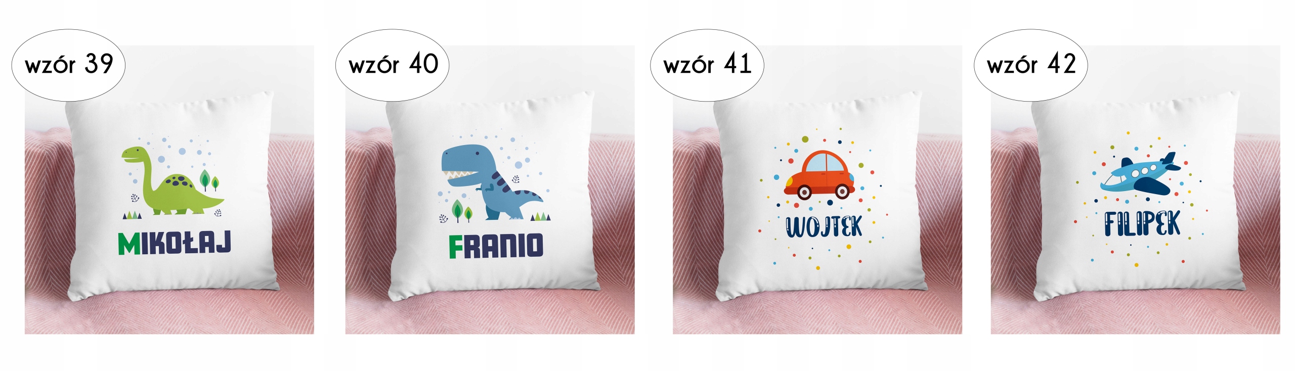 2. У повідомленні продавцю надайте унікальний малюнок подушки, розташований над кожним дизайном, і назву, потрібну для персоналізації подушки.