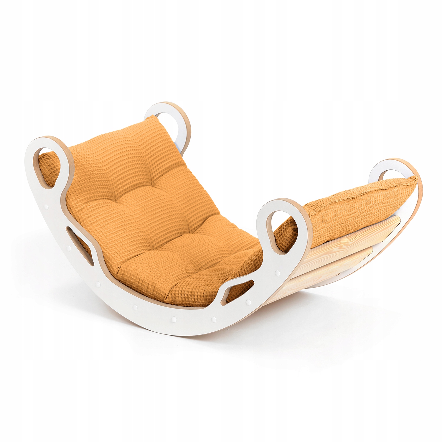 Виготовлений із сертифікованих матеріалів, тканина 100% бавовна, дуже приємна та м'яка. Адаптовано до рокерів Монтессорі, але, звичайно, працюватиме й поза ними. Бавовняна вафля досить густа, м'ясиста і приємна на дотик. Сертифікат Oeko-Tex Standard 100, який гарантує, що матеріал безпечний і не містить токсичних речовин. Нерівномірна структура вафлі неодмінно зацікавить найменших дітей