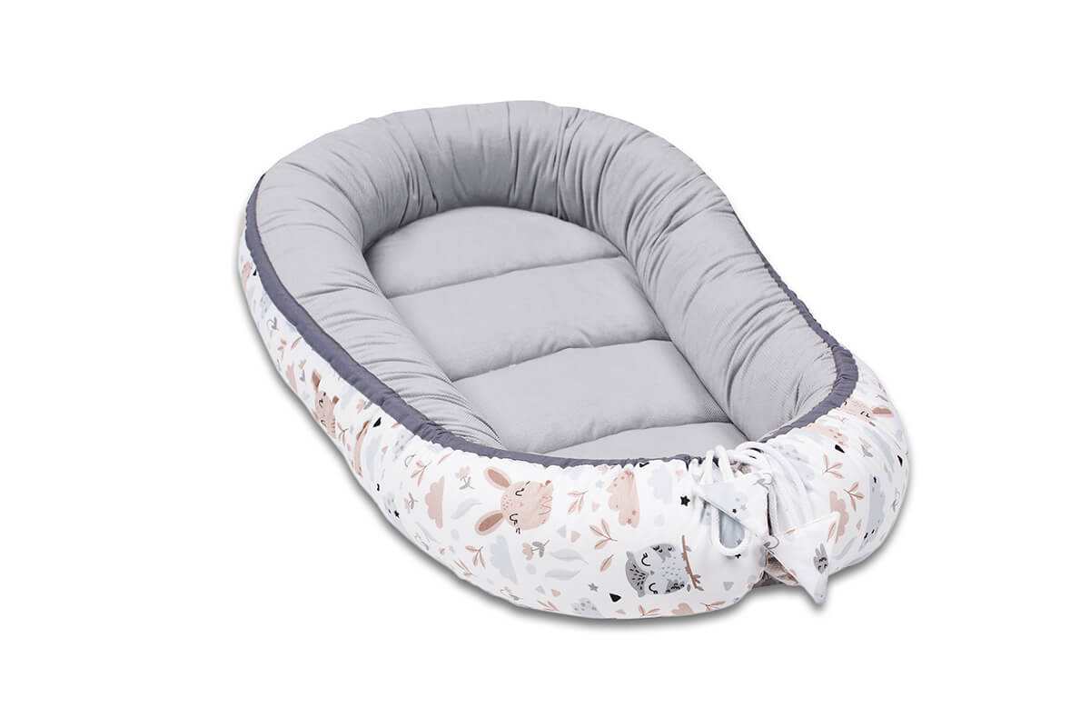 Двосторонній кокон: затишне місце для сну, захищає від жорстких сходинок ліжка, а в ліжку батьків забезпечить безпечне місце під час сну з мамою і татом. Високі м'які борти гнізда дозволяють легко покласти дитину на бік. p>
