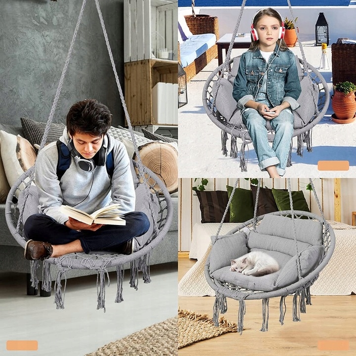 Вішати наші гойдалки - суцільне задоволення - просто встановіть їх на відповідний гачок. Унікальною особливістю наших гойдалок є можливість складати їх, що дозволяє легко брати їх із собою в подорож. Уявіть, як розслабляюче може бути гойдатися на фоні красивих пейзажів - моря чи гір, тримаючи в руці ранкову чашку кави. Наша гойдалка дарує це унікальне задоволення.