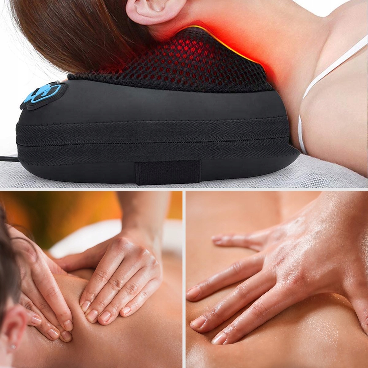 ПОДУШКА МАСАЖНА ШІАЦУ ДЛЯ МАСАЖУ ШИЇ ТА СПИНИ З ПІДІГРІВОМ