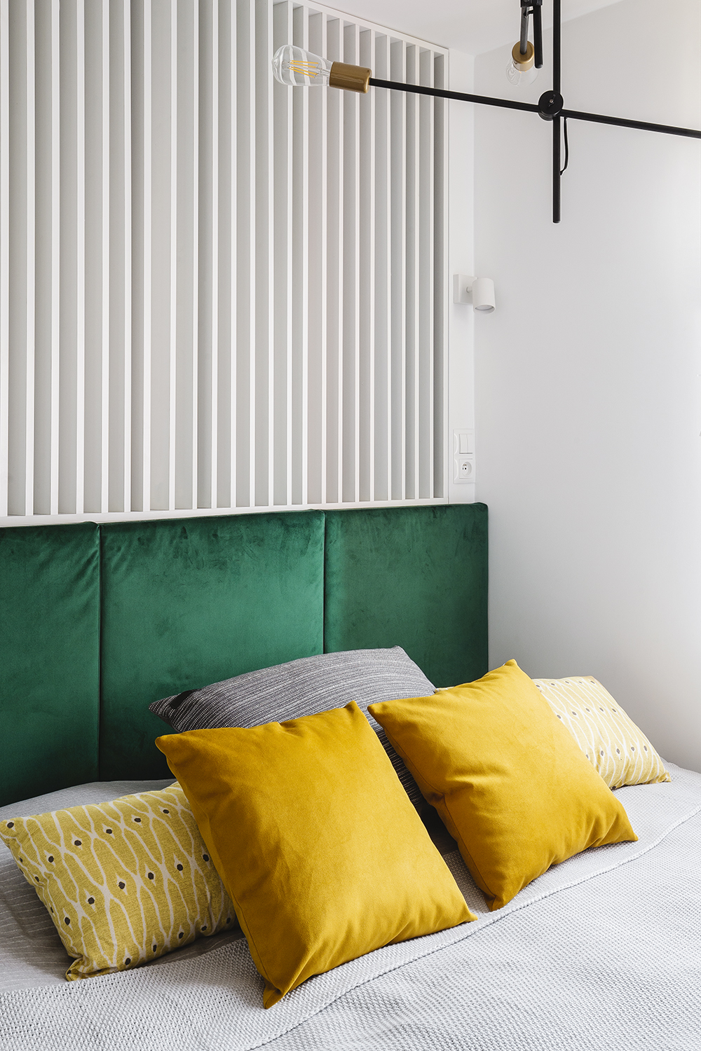 Пропозиція також включає гладкі пінопластові панелі для легкого встановлення на стіну чи узголів’я. Тут French Velvet 658 пляшково-зелений
