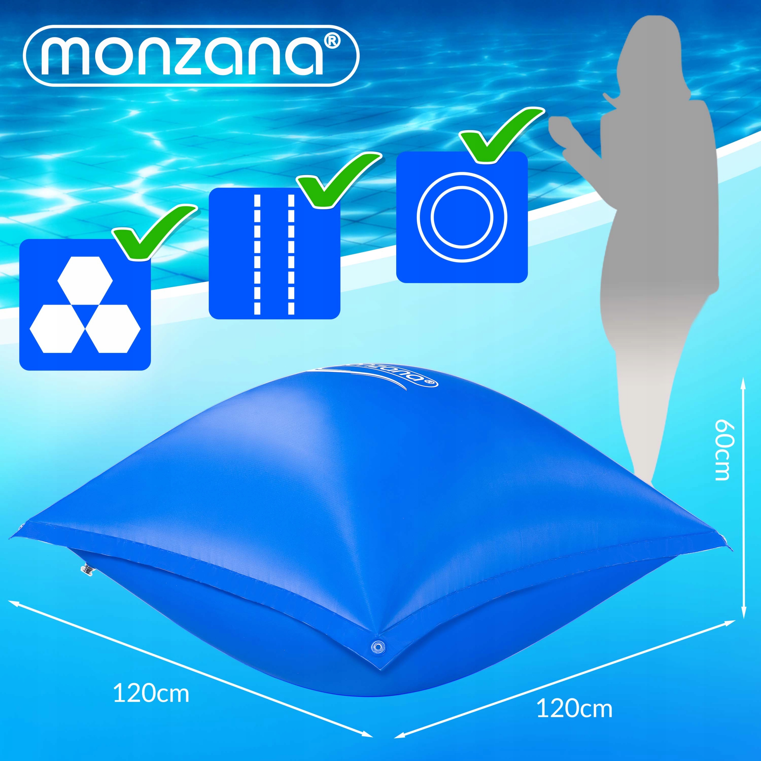 Стійкі до розривів подушки для басейну від monzana® захищають ваш критий басейн від морозу та запобігають примерзанню брезенту до води басейну.