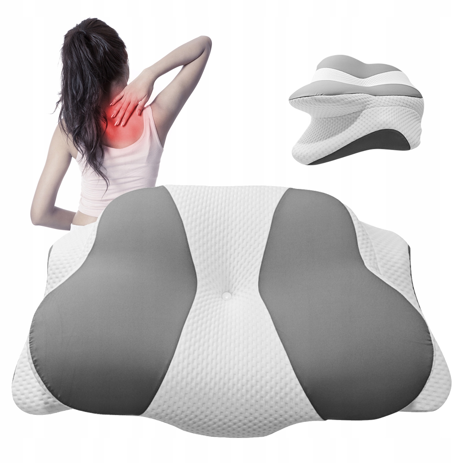 - Форма метелика з увігнутою поверхнею точно підтримує голову, зберігаючи природний вигин шийного відділу хребта. Його можна використовувати з традиційними або вигнутими подушками - це сприяє кровообігу в голові, знімає біль у шиї та скутість, а також усуває напругу, яка заважає сну.